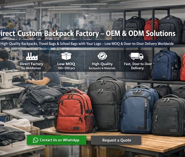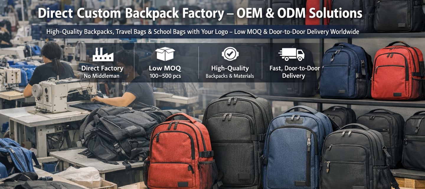 Specializing in OEM and ODM, we provide travel, laptop, and school backpacks for Amazon sellers, retail brands, and businesses needing customized products for promotions or events. Contact us directly for professional customization.